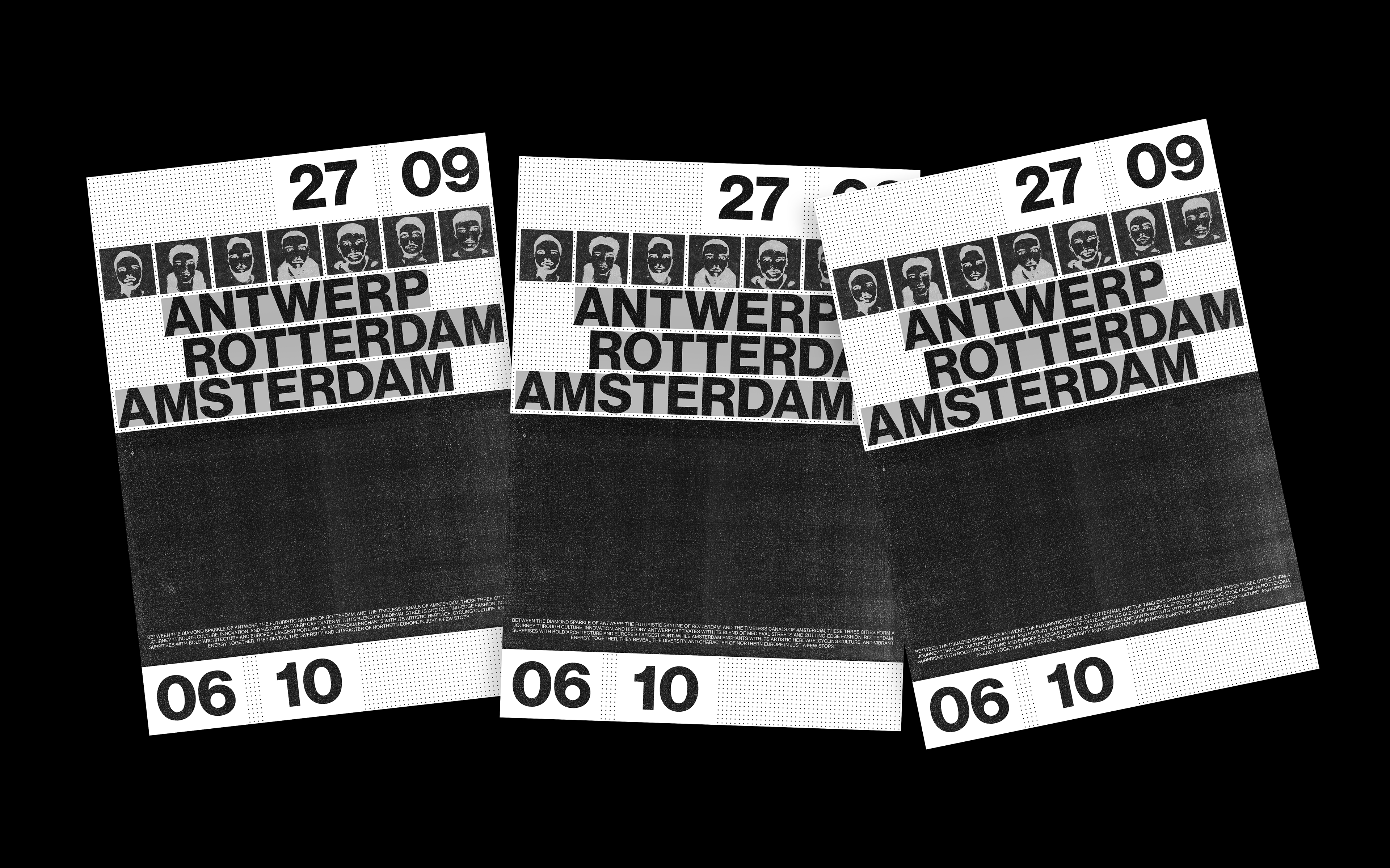 Personal project focused on a trip that I did with some friends to North Europe. We spent 10 days exploring Antwerp, Rotterdam and Amsterdam and I did a poster to materialize the experience.