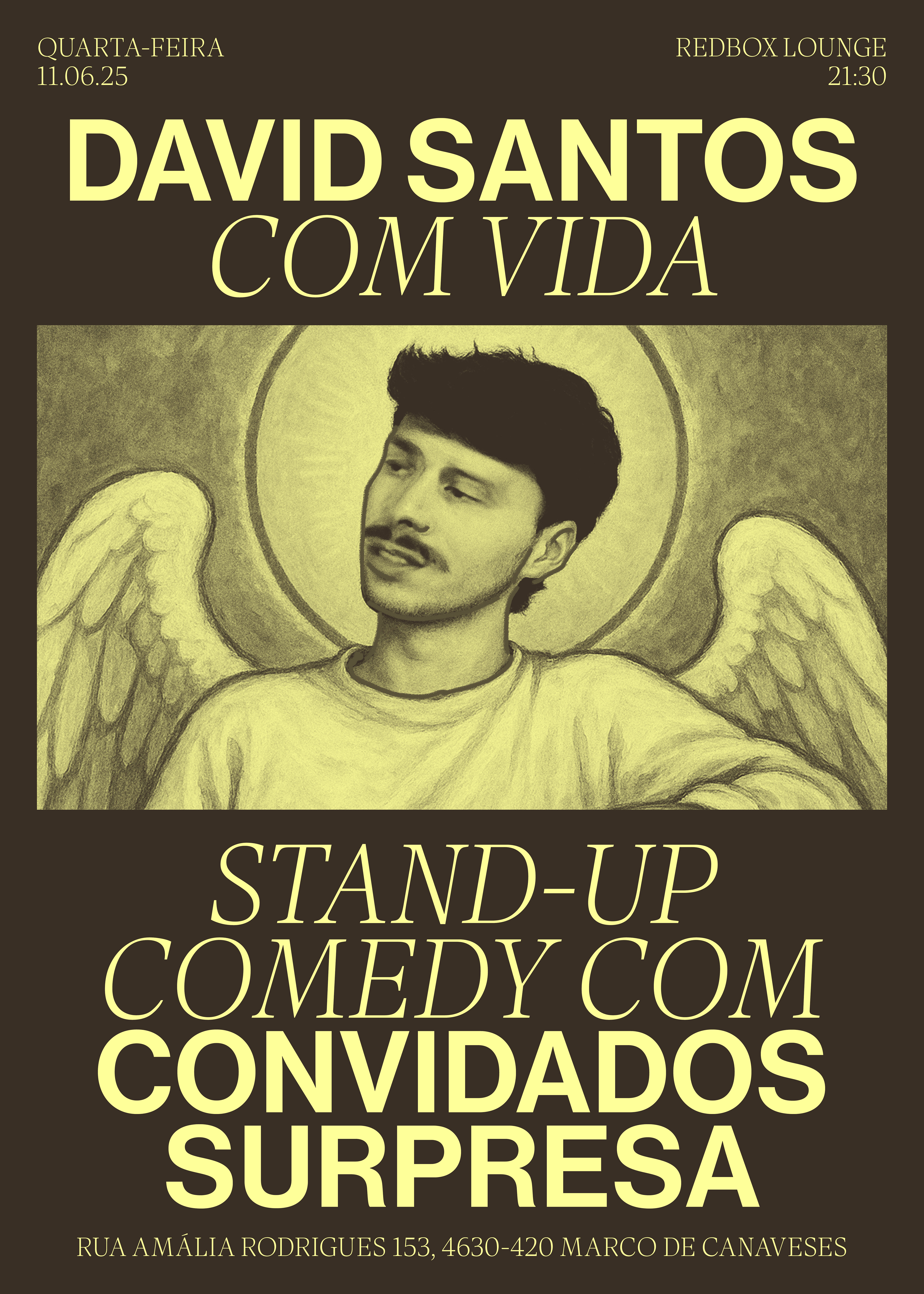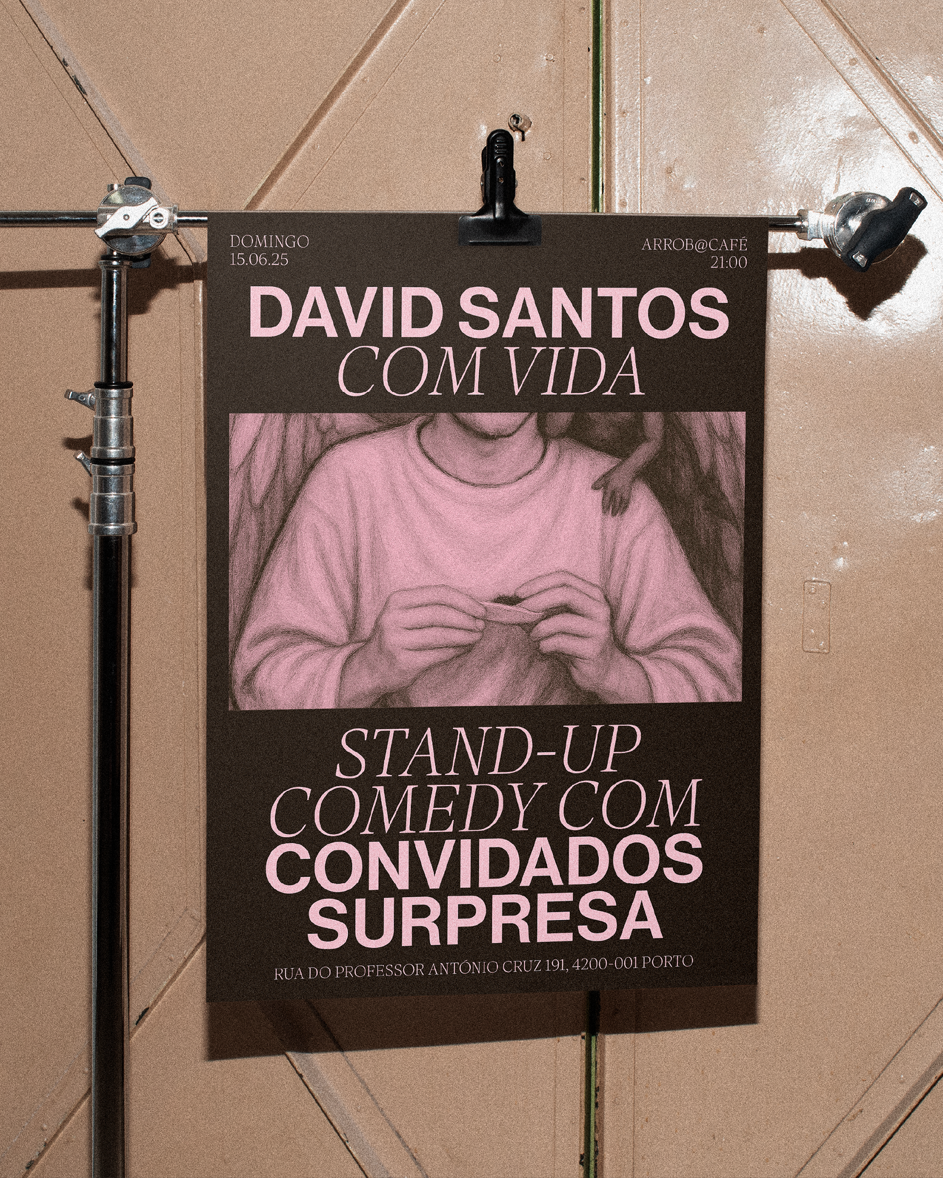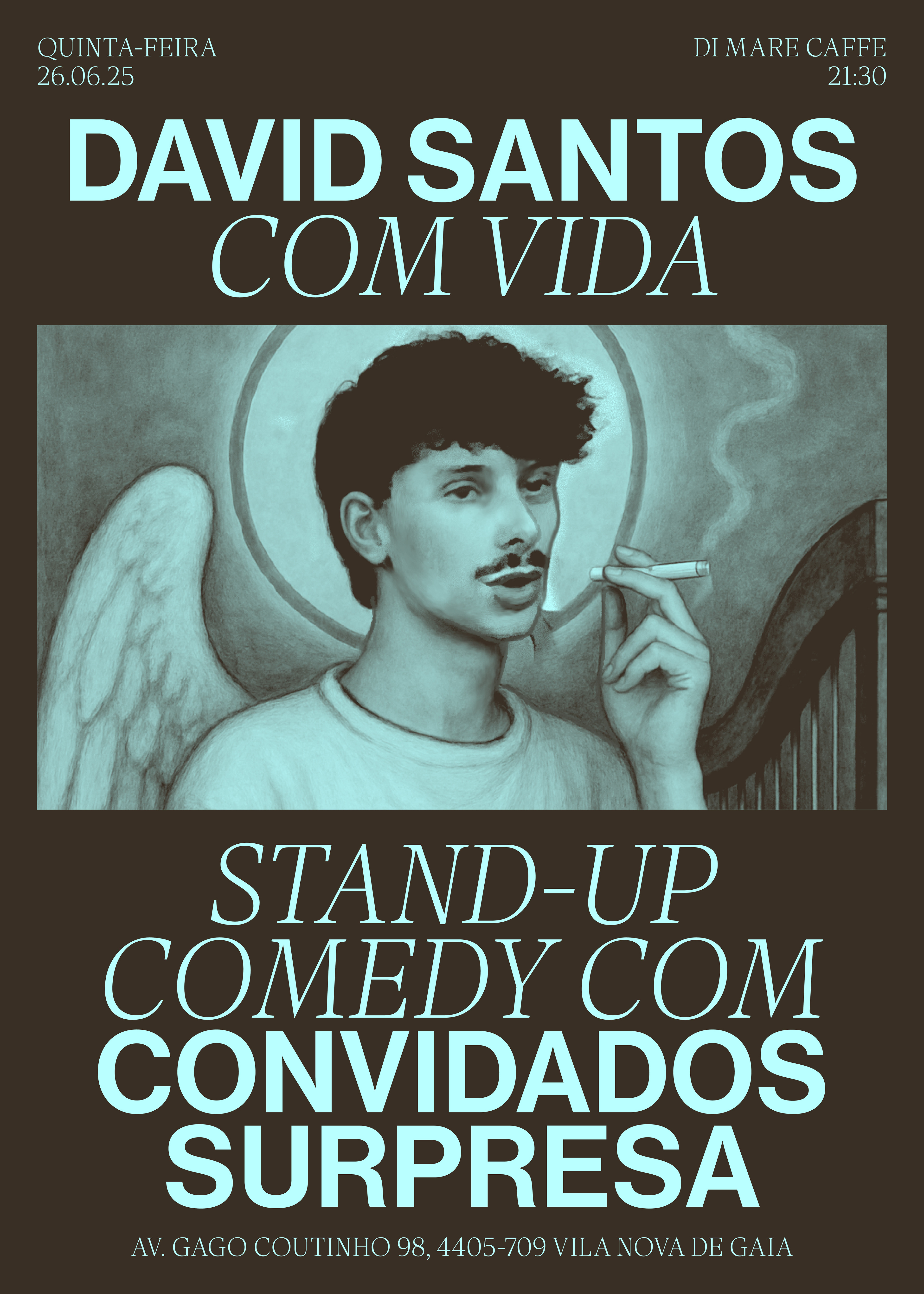 Created a set of posters for David Santos's triple comedy show run, "David Santos Com Vida". Held over three nights, the shows featured some guests, offering a consistent yet engaging experience filled with humor, storytelling, and sharp observations.