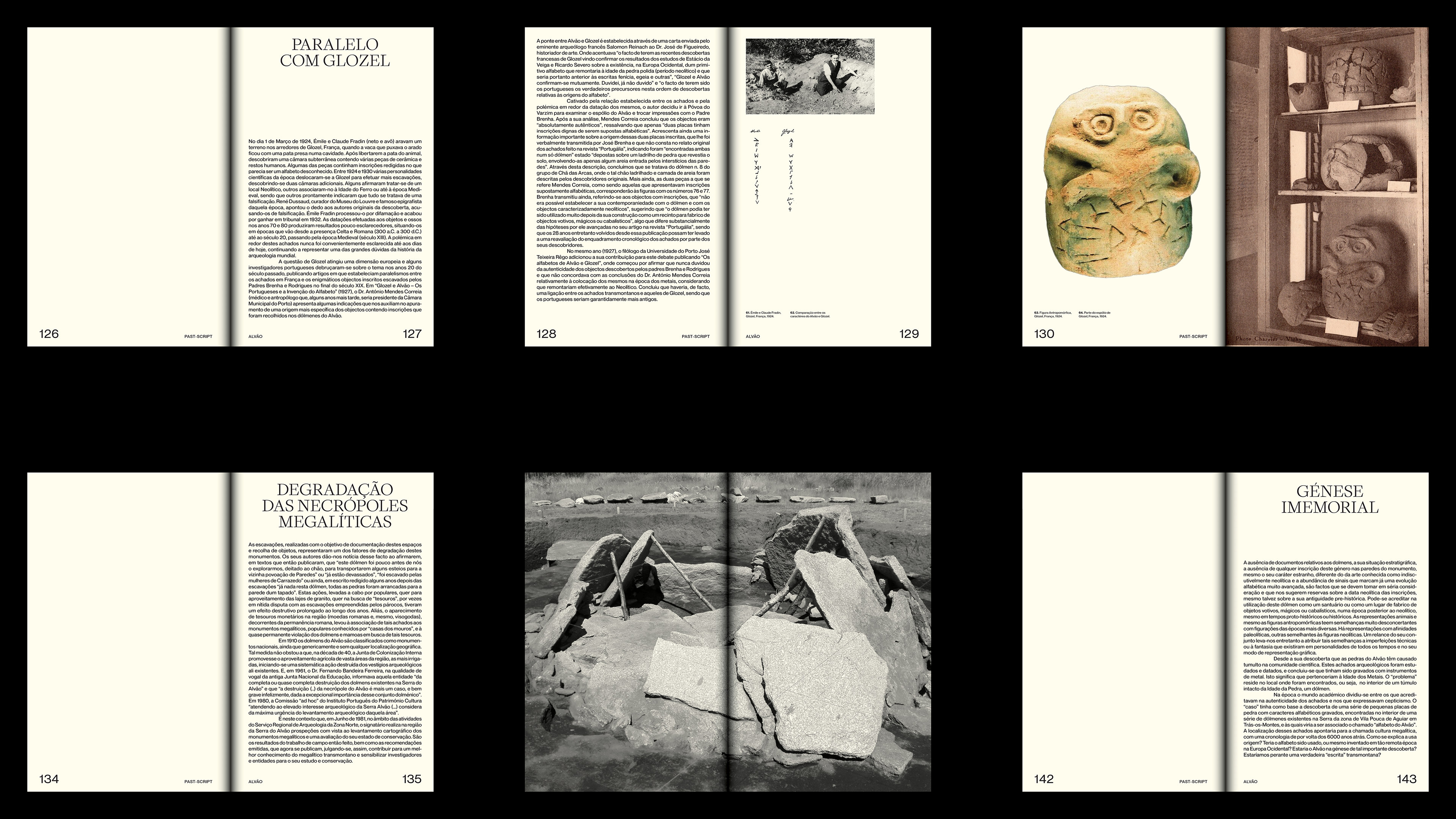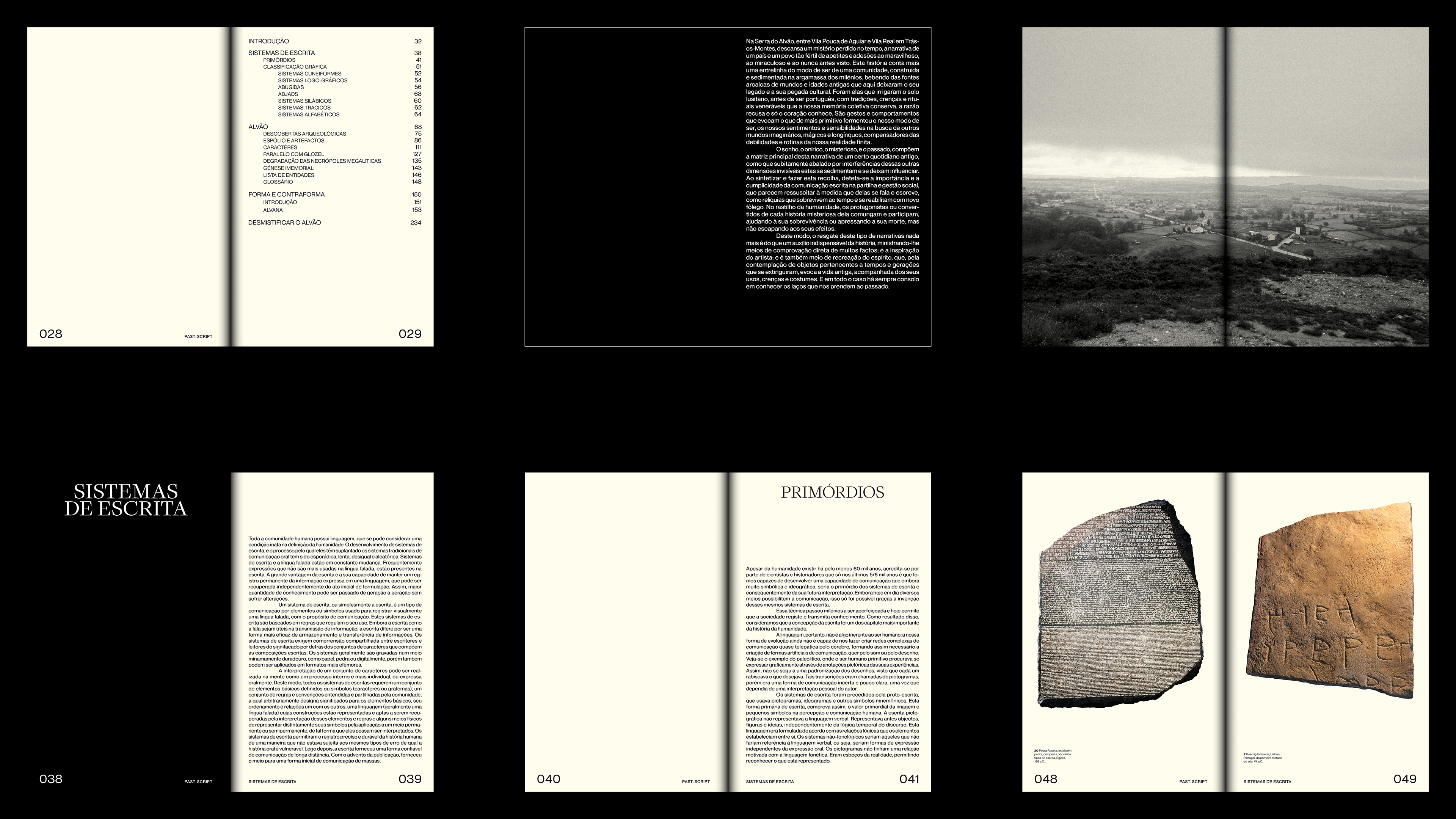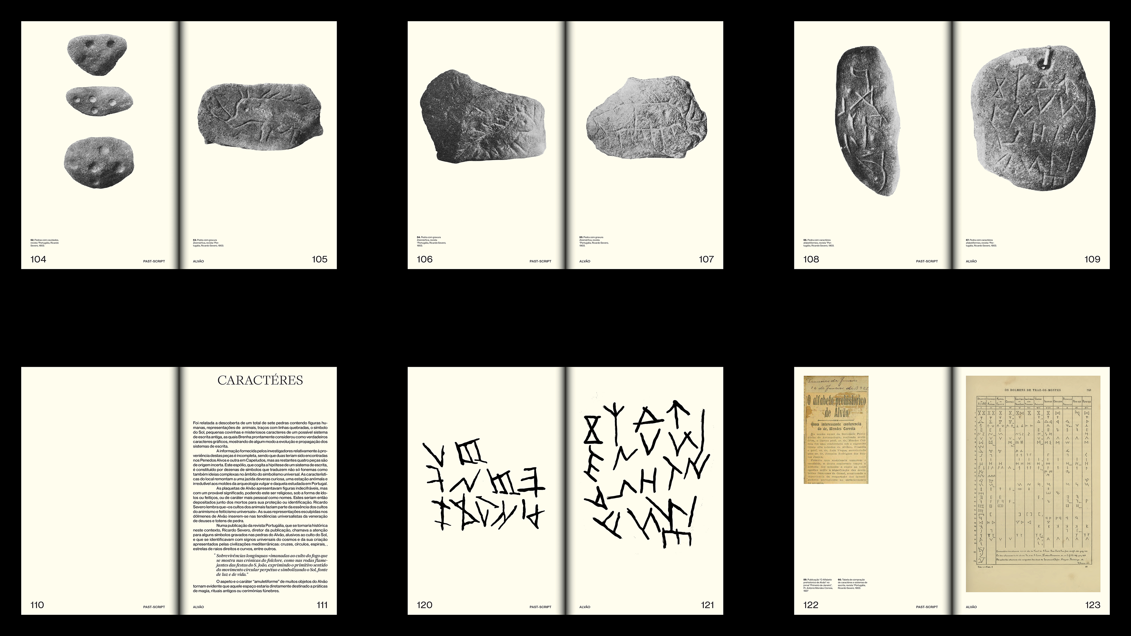 "PAST-SCRIPT" explores the enduring mystery surrounding a set of artefacts discovered in 1894 in the Serra do Alvão by priests José Brenha and Rafael Rodrigues. Motivated by local legends, the priests excavated ancient dolmens in search of treasures and uncovered a remarkable collection of stones and war objects engraved with anthropomorphic figures and symbols. Their findings gave rise to the intriguing theory that these engravings might represent one of the earliest forms of alphabetic writing in the world.
